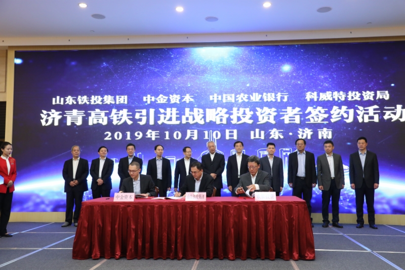 10月10日,濟青高鐵引進戰(zhàn)略投資者簽約活動在山東大廈舉行,山東省凌文副省長,發(fā)改委、國資委、交通廳、山東鐵投集團等主要負責人,中金資本、科威特投資局、農(nóng)銀投資等機構(gòu)投資者主要負責人出席會議。濟青高鐵作為國家鐵路投融資體制改革后第一條以地方為主投資建設的高速鐵路,本次引戰(zhàn)的成功是我省落實中央和山東省政府部署、探索中國高速鐵路項目投融資新模式、推動“雙招雙引”的重要舉措,標志著我省在加快推進基礎設施建設投融資改革方面又一次走在了全國前列。