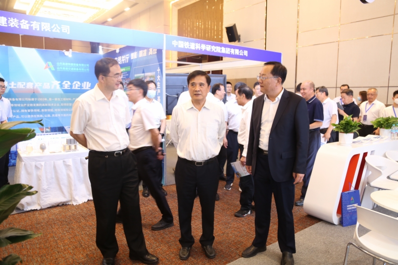 會議期間,黃民一行到集團(tuán)展廳及會議現(xiàn)場展區(qū)參觀交流,集團(tuán)推出的山東鐵路智能化建設(shè)管理平臺、CRTSⅢ型板式無砟軌道智能施工技術(shù)與裝備引得眾人關(guān)注。山東鐵路智能化建設(shè)管理平臺是以數(shù)字技術(shù)賦能高鐵智能化建設(shè)的重大成果,該平臺包含從設(shè)計到施工再到運(yùn)營階段36個板塊、390多個功能模塊,實(shí)現(xiàn)了鐵路建設(shè)全生命周期管理,形成了“一張圖、數(shù)字化、智能化、可視化”的管理特色。平臺已在濟(jì)濱高鐵項(xiàng)目全面推廣應(yīng)用,取得了良好成效,累計產(chǎn)生數(shù)據(jù)量70余萬條,活躍用戶8000多人。CRTSⅢ型板式無砟軌道智能施工技術(shù)與裝備是指CRTSⅢ型板式無砟軌道“測量-調(diào)整-支護(hù)-灌注”一體化施工裝備,并與配套施工工裝之間無縫銜接,能夠提高施工效率50%以上,減少人力1/3以上,實(shí)現(xiàn)施工全過程質(zhì)量可控,并可拓展到其它類型無砟軌道施工中。