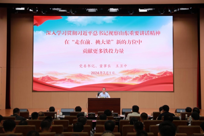 7月1日,在喜迎中國共產(chǎn)黨成立103周年之際,山東鐵投集團(tuán)舉行學(xué)習(xí)貫徹習(xí)近平總書記視察山東重要講話精神宣講會,全面領(lǐng)會、全面把握、全面落實(shí)習(xí)近平總書記對山東工作的總定位、新要求,教育引導(dǎo)廣大黨員干部職工切實(shí)把思想和行動統(tǒng)一到習(xí)近平總書記重要講話重要指示精神上來,以更加奮發(fā)有為的精神狀態(tài)干事創(chuàng)業(yè),為譜寫中國式現(xiàn)代化山東篇章貢獻(xiàn)更多鐵投力量。