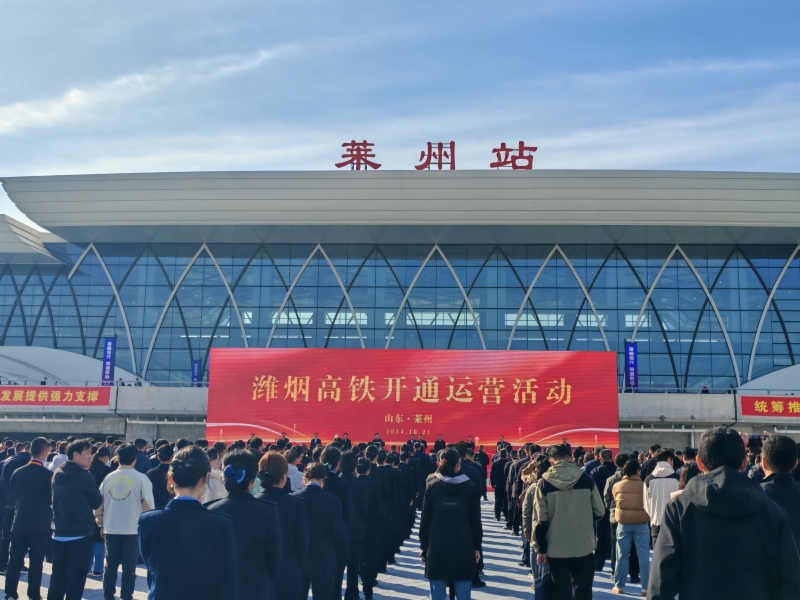 10月21日,由山東鐵投集團(tuán)投資建設(shè)的濰煙高鐵開(kāi)通運(yùn)營(yíng),山東高鐵運(yùn)營(yíng)里程突破3000公里,達(dá)到3047公里,繼續(xù)保持全國(guó)領(lǐng)先。當(dāng)日上午,濰煙高鐵開(kāi)通運(yùn)營(yíng)活動(dòng)在萊州站舉行。山東省委常委、煙臺(tái)市委書(shū)記江成出席活動(dòng),副省長(zhǎng)宋軍繼、國(guó)鐵集團(tuán)安全總監(jiān)兼安監(jiān)局局長(zhǎng)王保國(guó)出席活動(dòng)并講話。9點(diǎn)28分,首發(fā)列車(chē)正式發(fā)車(chē)。