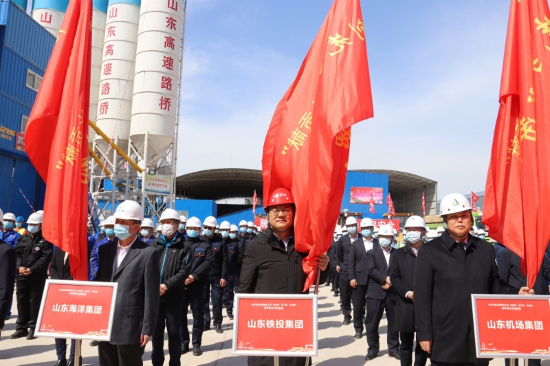 3月28日上午,全省交通運(yùn)輸重點(diǎn)工程“戰(zhàn)疫情、保工期、比貢獻(xiàn)”創(chuàng)先爭優(yōu)勞動(dòng)競賽誓師大會在山東高速集團(tuán)京臺高速德州至齊河段改擴(kuò)建工程施工現(xiàn)場舉行。省委常委、統(tǒng)戰(zhàn)部部長、省總工會主席張江汀出席大會并宣布競賽啟動(dòng),副省長凌文主持大會。大會向山東鐵路投資控股集團(tuán)、山東高速集團(tuán)、山東省機(jī)場集團(tuán)、齊魯交通發(fā)展集團(tuán)等12家省屬交通運(yùn)輸重點(diǎn)企業(yè)和重點(diǎn)項(xiàng)目負(fù)責(zé)人授旗,集團(tuán)黨委書記、董事長姜長興代表集團(tuán)公司接受授旗。