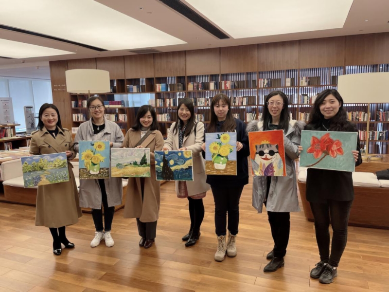 油畫創(chuàng)作體驗,培養(yǎng)審美情趣。機(jī)關(guān)和區(qū)域公司女職工以“巾幗心向黨 奮斗新征程”為主題,開展了油畫創(chuàng)作體驗活動。本次活動邀請專業(yè)油畫老師為大家介紹了油畫入門基礎(chǔ)知識,講解顏料配比并親自演示構(gòu)圖、上色等筆法技巧。在簡單的學(xué)習(xí)后,大家選擇了自己喜愛的繪畫主題,開始油畫作品。在創(chuàng)作過程中,大家相互幫助,相互學(xué)習(xí),相互欣賞、品評作品,進(jìn)一步加深了彼此之間的了解和溝通,增進(jìn)了團(tuán)隊凝聚力和向心力。