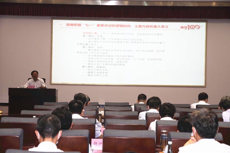 姜長興結(jié)合個人所學所聞、所思所悟,深入解讀了習近平總書記“七一”重要講話的邏輯結(jié)構(gòu)、主要內(nèi)容和重大意義,詳細闡釋了講話中提出的一系列新思想新觀點新論斷,重點闡述了中國共產(chǎn)黨百年來創(chuàng)造的“四個偉大成就”和向世界作出的“四個莊嚴宣告”。大家邊聽邊思考,進一步加深了對習近平總書記“七一”重要講話精神的理解,感悟了思想、鼓舞了斗志、汲取了力量,增強了“四個意識”、堅定了“四個自信”。
