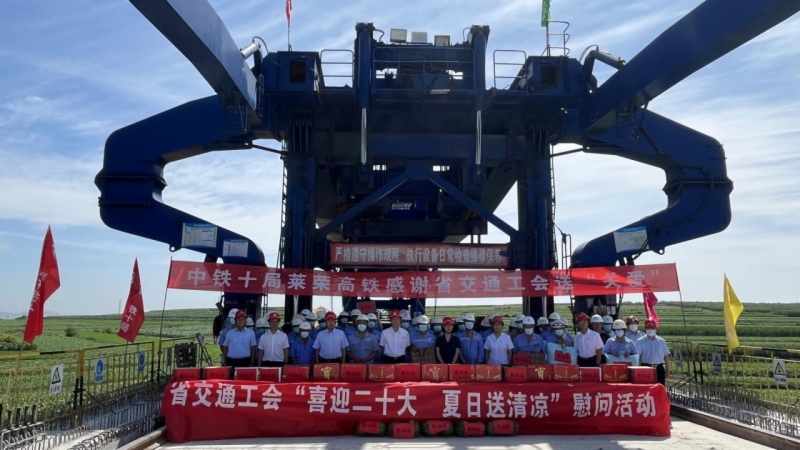 7月14日至15日,集團(tuán)工會(huì)聯(lián)合省交通工會(huì)來(lái)到濰煙、萊榮高鐵建設(shè)一線,開(kāi)展“喜迎二十大,夏日送清涼”慰問(wèn)活動(dòng),并就省交通運(yùn)輸重點(diǎn)工程“勇創(chuàng)新、當(dāng)先鋒、比貢獻(xiàn)”勞動(dòng)競(jìng)賽開(kāi)展情況進(jìn)行調(diào)研。省交通工會(huì)主席牟艷紅,集團(tuán)黨委副書記高燕、工會(huì)主席張慶星率隊(duì)慰問(wèn)。