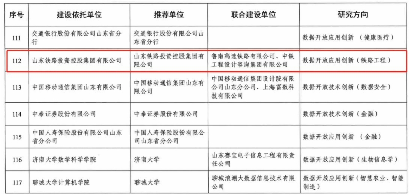 近日,山東省大數(shù)據(jù)局公布了《山東省數(shù)據(jù)開放創(chuàng)新應(yīng)用實(shí)驗(yàn)室(第三批)名單》,集團(tuán)申報(bào)的“鐵路工程大數(shù)據(jù)研究實(shí)驗(yàn)室”成功獲批。