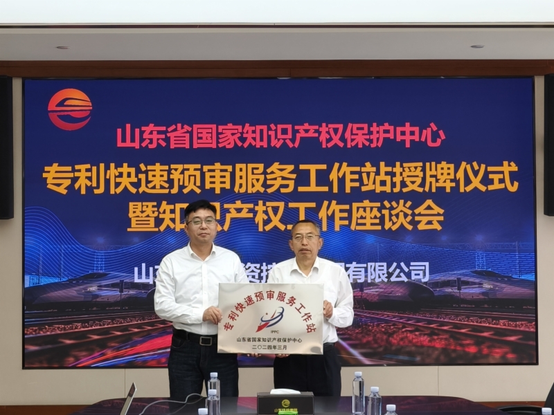 4月22日上午,山東鐵投集團與山東省國家知識產(chǎn)權保護中心舉行了“專利快速預審服務工作站”授牌儀式。集團總工程師孫洪斌、省國家知識產(chǎn)權保護中心副主任尹強民參加活動。