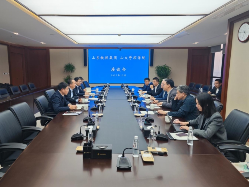 丁榮貴感謝山東鐵投集團的熱情接待,并介紹了山東大學(xué)以及管理學(xué)院的基本情況。他表示,山東大學(xué)管理學(xué)院在文化、體制、校友資源等方面具有特色優(yōu)勢,希望基于學(xué)院自身學(xué)科特點,與山東鐵投集團在企業(yè)系統(tǒng)賦能、智力人才支撐、平臺資源匯聚等方面加強交流合作,促進產(chǎn)學(xué)研深度融合,為雙方在人才培養(yǎng)、科研創(chuàng)新、項目合作等領(lǐng)域的協(xié)同發(fā)展奠定更為堅實的基礎(chǔ)。