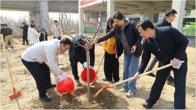 上午11時,植樹活動在建設中的惠民站啟動。大家按照片區(qū)劃分“責任林”,共同揮鍬培土、栽植樹苗、澆水灌溉,確?!霸砸豢?、活一棵”。經(jīng)過1小時的勞動,幾十株白皮松、櫻花樹等在站區(qū)旁“安家落戶”,展現(xiàn)出勃勃生機。