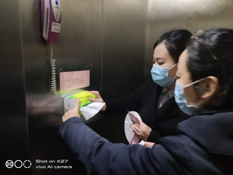 此后,每到下班后或周末,她都會與社區(qū)工作人員一起參與疫情防控:在居民進出小區(qū)高峰時段協(xié)助測溫登記,降低人員聚集風險;看到有下樓買菜的老人戴的還是布料口罩,或是聽小區(qū)門口執(zhí)勤的安保人員說已經(jīng)幾天未還新口罩了,就及時送上自己買到的醫(yī)用口罩;她還從單位學習好的經(jīng)驗做法,仿照山東鐵投大廈電梯廳內(nèi)的防控措施,在小區(qū)內(nèi)部電梯里貼上了抽紙,幫助鄰居們避免接觸感染。
