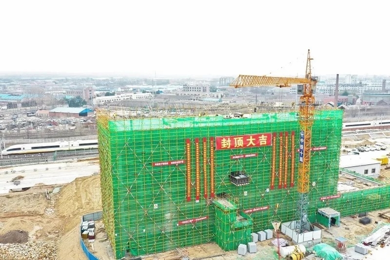 3月26日,濰萊高鐵萊西北站綜合樓主體工程順利完工。