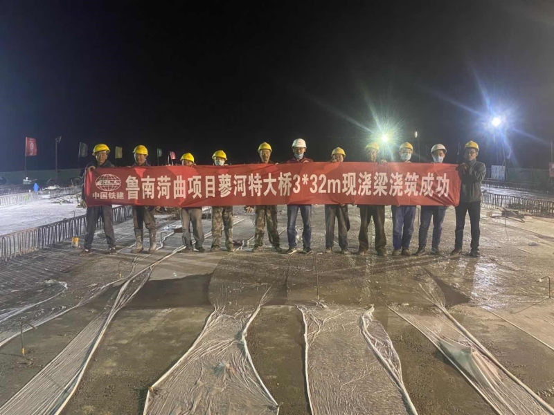 5月13日凌晨4點(diǎn),經(jīng)過(guò)45小時(shí)連續(xù)奮戰(zhàn),魯南高鐵蓼河特大橋82#-85#墩3*32.7m道岔現(xiàn)澆梁順利完成澆筑。