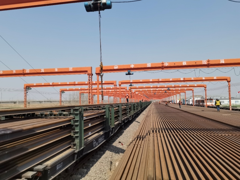 萊榮高鐵馬格莊鋪軌基地2022年6月份正式開(kāi)始籌建,當(dāng)年8月26日具備長(zhǎng)鋼軌存儲(chǔ)條件。基地線路全長(zhǎng)6.3公里,設(shè)2個(gè)長(zhǎng)軌存放區(qū),可存放長(zhǎng)軌400余公里。