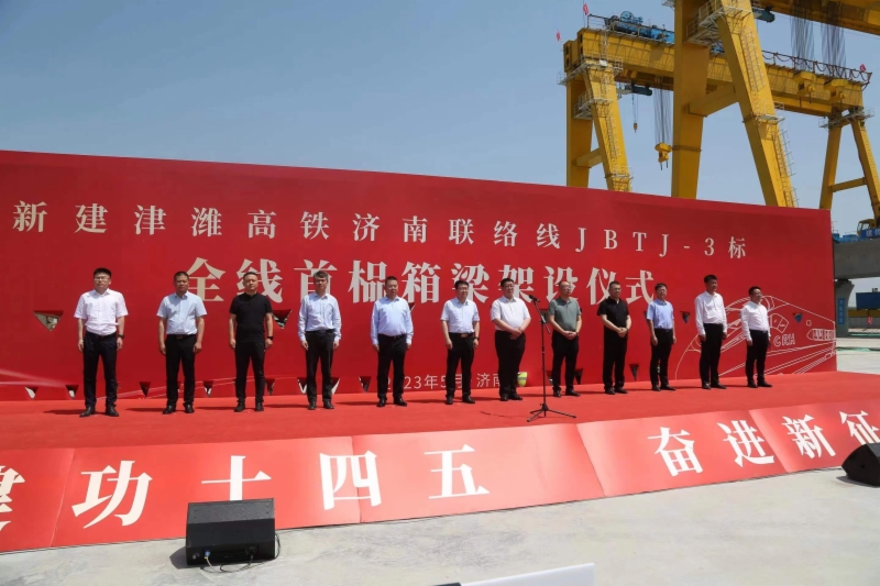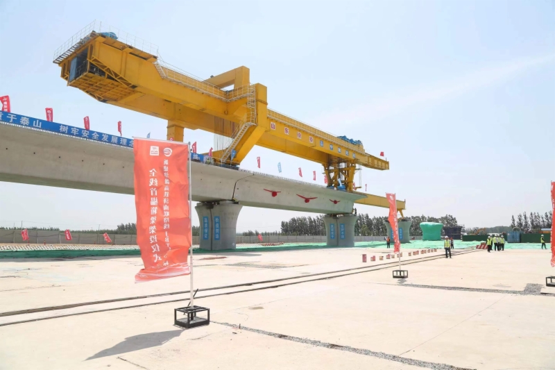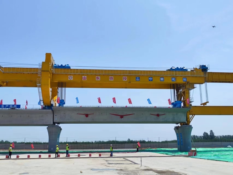 5月16日,在濟(jì)濱高鐵濟(jì)陽(yáng)制梁場(chǎng)架設(shè)現(xiàn)場(chǎng),隨著架橋機(jī)將首榀長(zhǎng)32.6米重850噸的箱梁平穩(wěn)、精準(zhǔn)地落在濟(jì)商1號(hào)特大橋的橋墩上,標(biāo)志著濟(jì)濱高鐵全線首榀預(yù)制箱梁架設(shè)成功,項(xiàng)目建設(shè)順利轉(zhuǎn)入箱梁架設(shè)新階段。