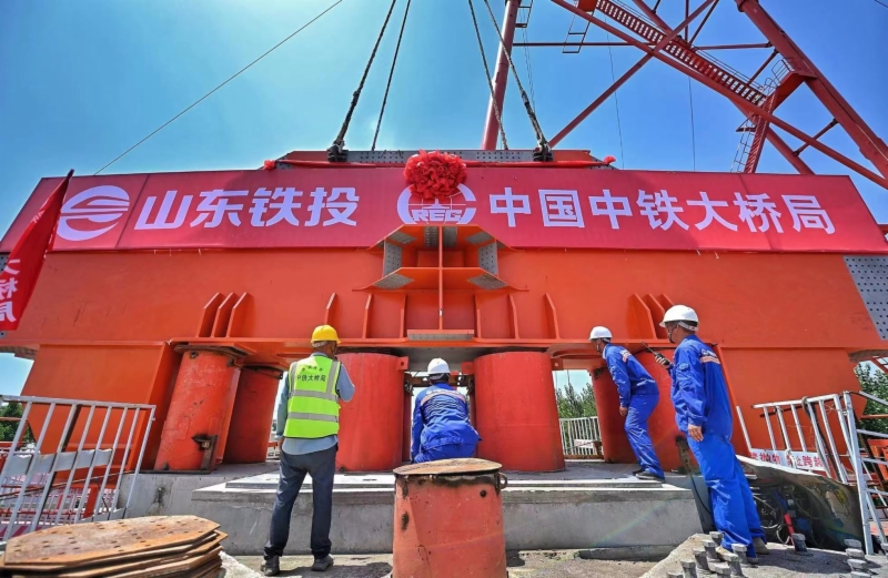 7月7日11時10分,隨著現(xiàn)場總指揮一聲令下,重達(dá)75噸的第一根鋼桁梁下弦桿穩(wěn)穩(wěn)降落,精準(zhǔn)安裝在濟(jì)陽黃河公鐵兩用特大橋主橋P40號墩頂,濟(jì)濱高鐵全線首節(jié)鋼梁成功架設(shè),標(biāo)志著濟(jì)陽黃河公鐵兩用特大橋建設(shè)邁入全新階段。