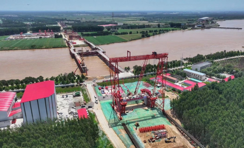 當(dāng)前,黃河已進(jìn)入主汛期,且正值上游小浪底水庫調(diào)水調(diào)沙,橋位處水位高、流速大,最大流量超3900立方米/秒。在鋼梁架設(shè)過程中,面對汛期對現(xiàn)場施工管理的影響,參建單位努力克服高溫天氣、施工空間有限、施工工藝復(fù)雜等難點,現(xiàn)場通過智能監(jiān)控、自動預(yù)警及數(shù)字化控制,實時監(jiān)測主梁拼裝線型、輔助設(shè)施受力和大型起吊設(shè)備安全狀態(tài),實現(xiàn)鋼梁精準(zhǔn)、安全、高效吊裝架設(shè)。