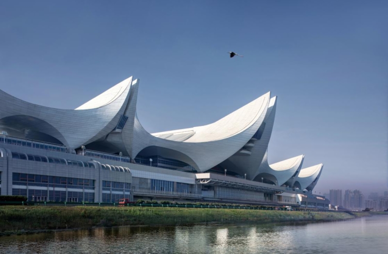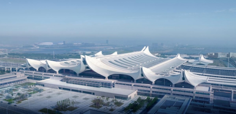 濟(jì)青高鐵紅島站位于青島市城陽(yáng)區(qū),是濟(jì)青高鐵設(shè)計(jì)終點(diǎn)站,站房面積7萬(wàn)平方米,采用線上式布置,由下至上分別為出站層、廣場(chǎng)層、站臺(tái)層、高架候車層及旅服夾層,建筑總高度52.993m。紅島站站場(chǎng)設(shè)計(jì)規(guī)模10臺(tái)20線,是山東省第二大,青島市最大的高鐵站。