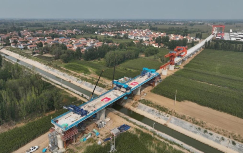 該連續(xù)梁位于濱州市濱城區(qū)楊柳雪鎮(zhèn),全長(zhǎng)113.5米,采用(32+48+32)米連續(xù)梁結(jié)構(gòu)。為確保連續(xù)梁順利合龍,山東鐵投集團(tuán)濟(jì)濱高鐵公司和中鐵二十四局克服施工環(huán)境復(fù)雜、環(huán)保要求高等難題,精心研究編制專(zhuān)項(xiàng)施工方案,緊盯施工關(guān)鍵環(huán)節(jié),現(xiàn)場(chǎng)安排專(zhuān)人對(duì)合龍段模板安裝、鋼筋綁扎、混凝土澆筑等工序進(jìn)行檢查驗(yàn)收,強(qiáng)化現(xiàn)場(chǎng)安全技術(shù)保障,選定在凌晨氣溫低、溫差小的時(shí)間段進(jìn)行混凝土澆筑,保證各項(xiàng)控制指標(biāo)符合規(guī)范要求,確保橋梁合龍質(zhì)量。