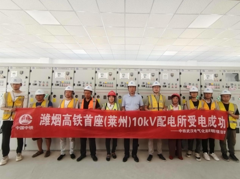 與此同時,在萊州站10KV配電所,施工人員相繼完成了電纜耐壓試驗、所內(nèi)設備電氣試驗、進線核相等操作,一次倒閘受電成功。萊州10KV配電所分別接引自國家電網(wǎng)35KV神堂變電站和110KV石都變電站兩路進線,外電源施工采用架空和高壓電纜混合線路方式。