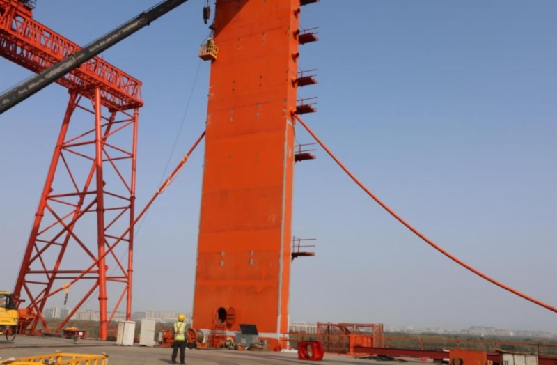 10月26日,濟(jì)濱高鐵濟(jì)陽(yáng)黃河公鐵兩用特大橋1號(hào)斜拉索架設(shè)張拉到位,為大橋后續(xù)作業(yè)、主跨合龍奠定了基礎(chǔ)。