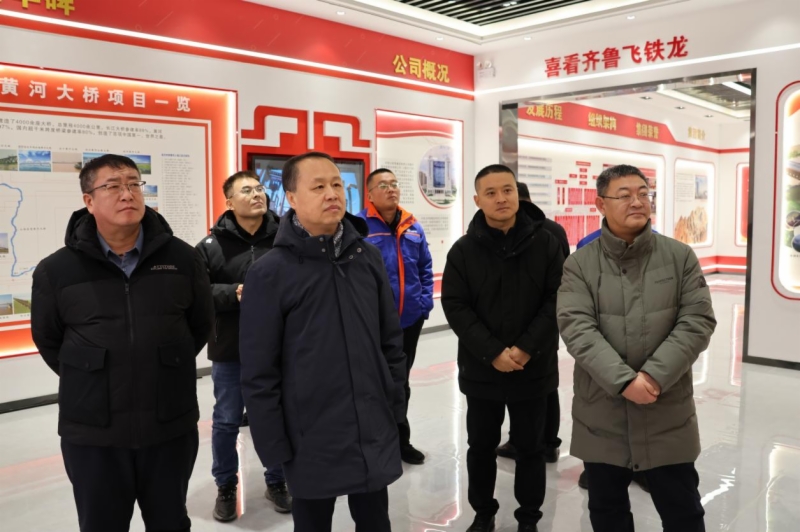王衛(wèi)中一行首先來到濟南指揮部看望干部職工,了解職工工作和生活情況,隨后又到JBJCTJ-1標(biāo)機場1號隧道、JBTJ-2標(biāo)濟陽黃河公鐵兩用特大橋及濟濱高鐵數(shù)字化中心,對橋梁、隧道工程安全質(zhì)量、施組安排、冬期施工安全生產(chǎn)情況及數(shù)字化中心運行情況進(jìn)行了全面調(diào)研,并就濟濱高鐵建設(shè)過程中存在的困難和問題與各參建單位進(jìn)行了現(xiàn)場研討。