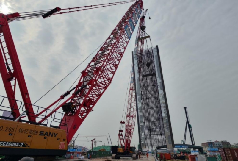 日前,在濟濱高鐵遙墻機場站施工現(xiàn)場,兩臺超百噸的履帶吊成功吊起重達38噸的地連墻鋼筋籠,“鋼鐵巨網”在空中實現(xiàn)“回直”,順利完成首幅吊裝入位,為圍護結構連續(xù)施工奠定堅實基礎。