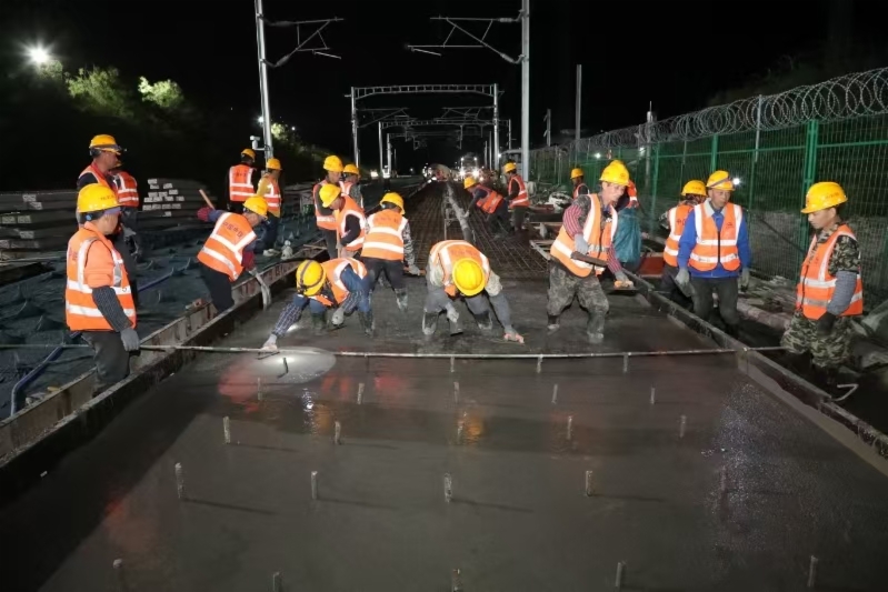 目前,本次施工部分項(xiàng)目已進(jìn)入調(diào)試和調(diào)整階段并即將啟動驗(yàn)收。其中軌道工程正進(jìn)行補(bǔ)砟、應(yīng)力放散、大機(jī)搗鼓作業(yè);四電工程正在進(jìn)行接觸網(wǎng)架設(shè)、精調(diào)及通信、信號、電力、信息客服設(shè)備設(shè)施調(diào)試;站場工程已進(jìn)入竣工清理工作。