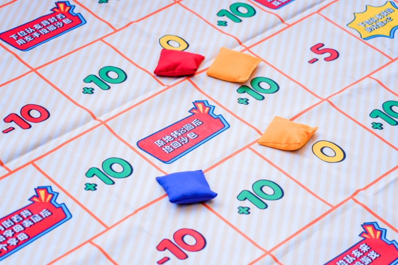 數(shù)算奪魁。參賽者依次排隊(duì),每人5個(gè)沙包,投擲沙包獲得相應(yīng)分值,5個(gè)加起來(lái)累計(jì)超過(guò)20分即為挑戰(zhàn)成功,蓋紅色通關(guān)印章;挑戰(zhàn)失敗,蓋藍(lán)色章。