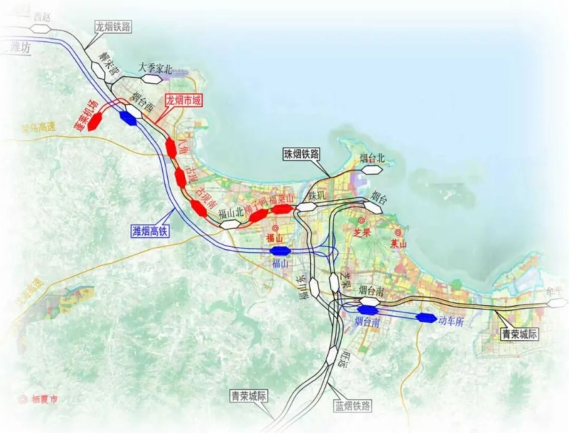 龍煙鐵路市域化改造工程位于煙臺市境內(nèi),是山東省重點鐵路交通項目。工程利用煙臺市內(nèi)既有龍煙鐵路、藍煙鐵路富余能力進行市域化改造,東起煙臺站,西至煙臺西站,通過新建蓬萊國際機場支線在煙臺西站接軌,連通蓬萊機場站,線路全長46.6公里,其中:新建橋梁10.52公里,隧道9.04公里,橋隧占比41.6%。全線新建福萊山、柳子河、古現(xiàn)南、古現(xiàn)、八角、蓬萊機場6座車站,改建煙臺、珠璣、福山北、煙臺西4座車站,項目可研批復(fù)總投資75億元,2024年9月底開工建設(shè),計劃2027年9月底建成通車。通車后,將以開行市域化公交列車的形式,串聯(lián)起煙臺站、煙臺西站、蓬萊機場站等交通樞紐,是山東省首條市域鐵路。