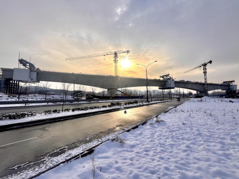 項目創(chuàng)新應(yīng)用全封閉保溫系統(tǒng),搭配智能溫度監(jiān)測與預(yù)警系統(tǒng),實時監(jiān)控、動態(tài)調(diào)整混凝土溫度,精準(zhǔn)把控澆筑與養(yǎng)護(hù)關(guān)鍵參數(shù);持續(xù)優(yōu)化混凝土配合比,采用蓄熱保溫工藝,搭設(shè)防風(fēng)作業(yè)棚,破解低溫環(huán)境下混凝土強(qiáng)度增長慢、易開裂的技術(shù)瓶頸。此外,還引入BIM技術(shù)搭建三維可視化模型,虛擬推演施工全過程,精準(zhǔn)測算環(huán)境因素對合龍精度的影響,實現(xiàn)各工序精細(xì)化管控。