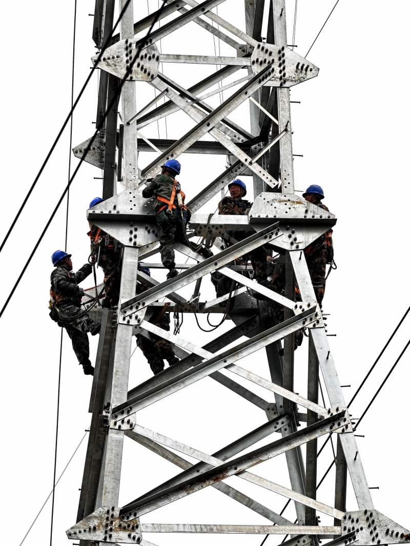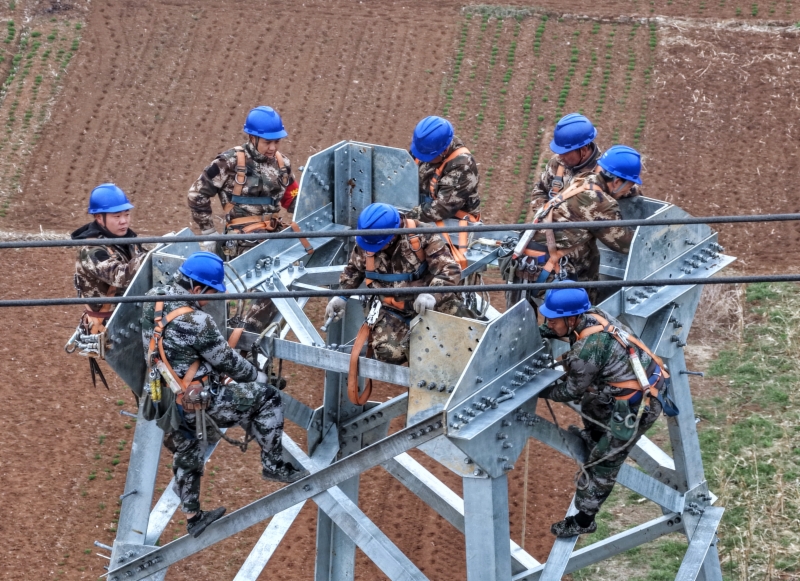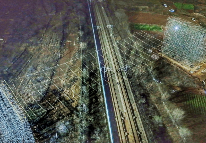 面對工期緊、作業(yè)面窄等挑戰(zhàn),項(xiàng)目團(tuán)隊(duì)科學(xué)組織、高效協(xié)同,積極對接國網(wǎng)山東省電力公司、國鐵濟(jì)南局,精準(zhǔn)實(shí)現(xiàn)鐵路天窗點(diǎn)與電力停電計(jì)劃同步,最大限度爭取有效工期、提高施工效率。施工過程中,項(xiàng)目創(chuàng)新采用“耐-直-耐”雙回耐張塔架設(shè)工藝,大幅提升線路結(jié)構(gòu)穩(wěn)定性和施工安全性。3月19日至25日,項(xiàng)目順利完成既有線路防護(hù)架搭設(shè)、拆網(wǎng)及線路拆舊立新全流程作業(yè)。